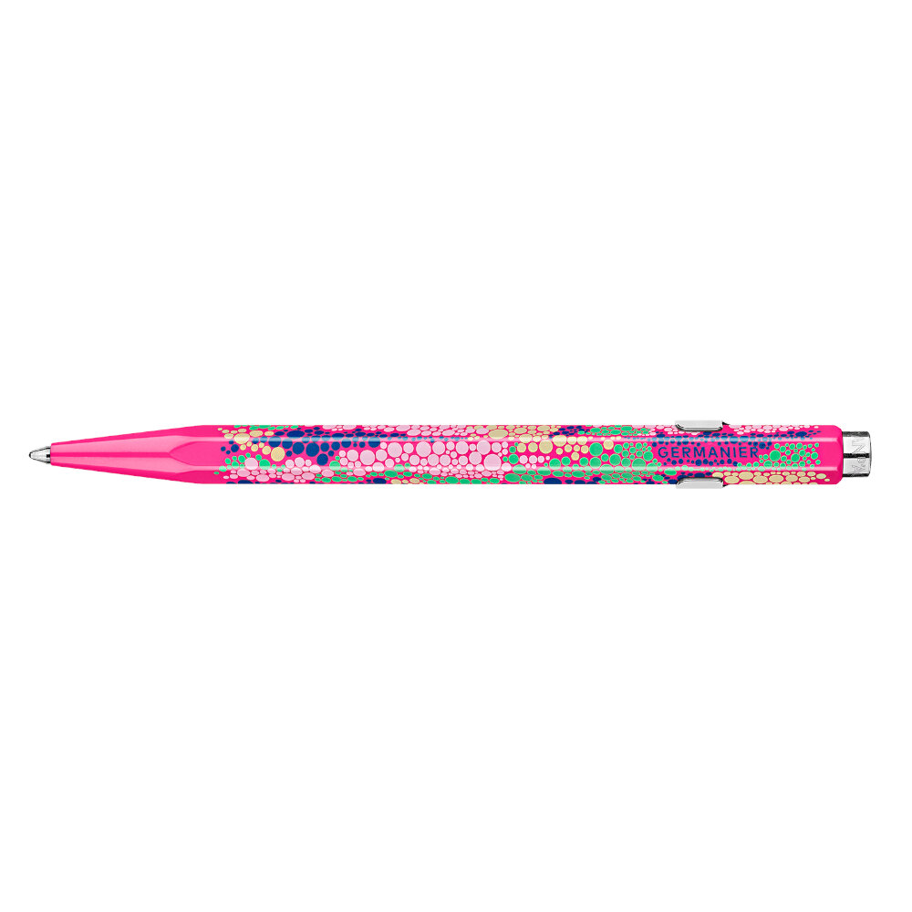 Δύο στυλό 849 σε αποχρώσεις νέον με μοτίβα εμπνευσμένα από χάντρες διαθέτουν περήφανα το λογότυπο GERMANIER.