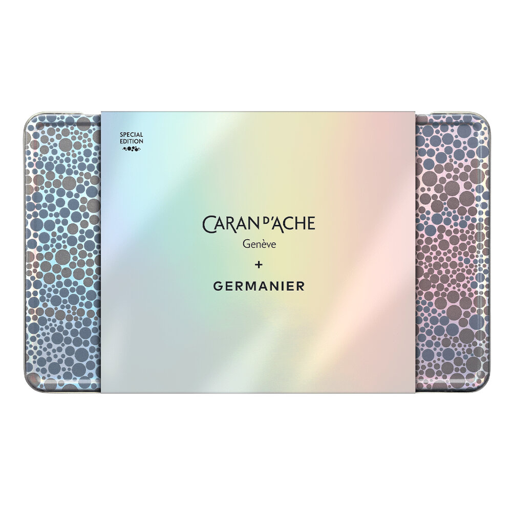 Το σετ με τις ξυλομπογιές περιλαμβάνει 13 επιλεγμένα από τον ίδιο τον Germanier καθώς και πρόσβαση σε μάθημα ζωγραφικής από τον ίδιο.