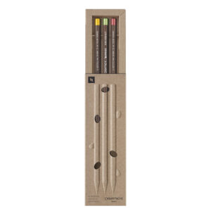 Η συλλεκτική έκδοση της Caran D’Ache σε συνεργασία με την Nespresso περιλαμβάνει 3 ξύλινα μολύβια από ξύλο οξιάς και ο γραφίτης τους είναι μερικώς κατασκευασμένος από ανακυκλωμένους κόκκους καφέ Nespresso.