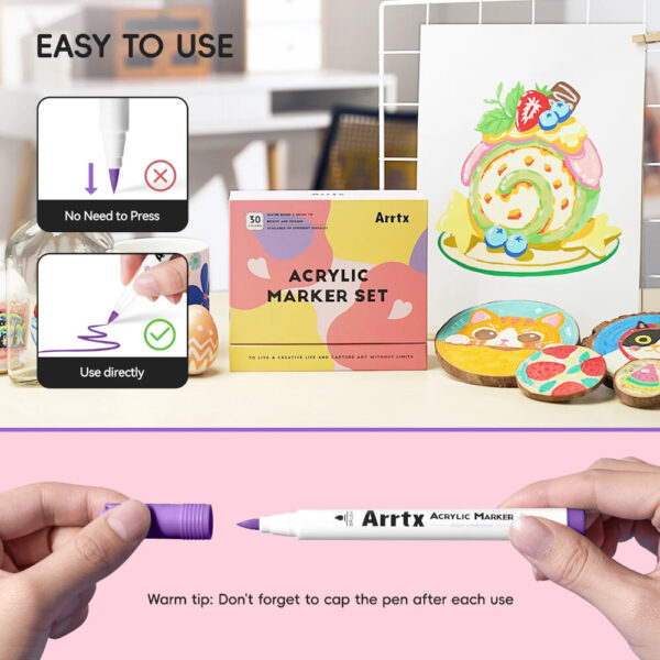 [Λειτουργούν καλά σε πολλές επιφάνειες] – Το σετ μαρκαδόρων ζωγραφικής της Arrtx παρέχει λείο μελάνι με βάση το νερό και εξαιρετική κάλυψη για διάφορες επιφάνειες, όπως ζωγραφική σε βράχο, μέταλλο, χαρτί, ξύλο, πλαστικό, καμβά, υφάσματα, κεραμικά και πολλά άλλα. Οι δημιουργικές δυνατότητες είναι απεριόριστες!